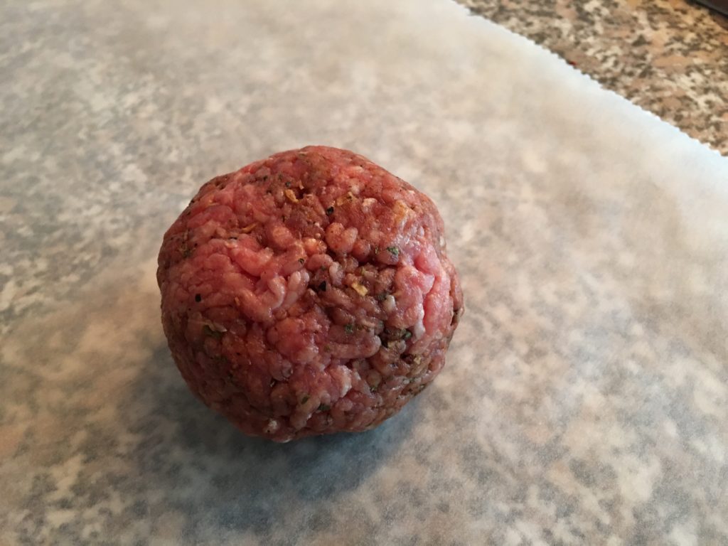 Aus je einer Portion Hackfleisch zunächst mit den Händen eine Kugel formen.